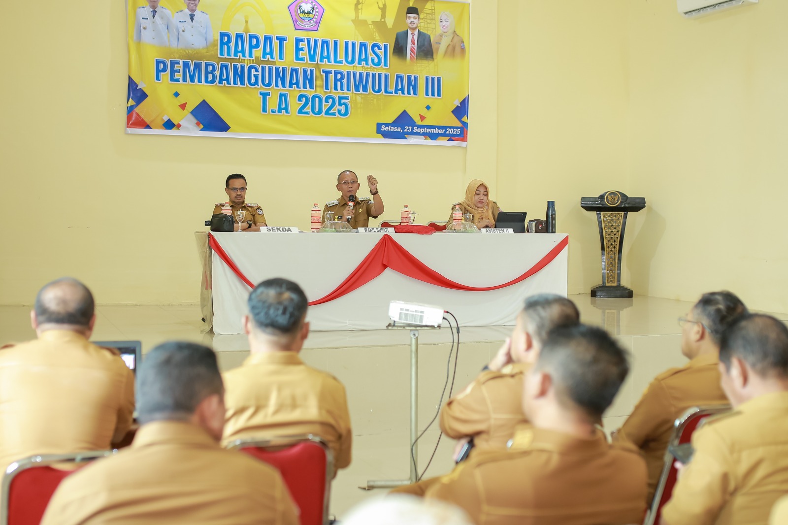 “Evaluasi ini bukan hanya sekadar penilaian, tetapi forum untuk mencari solusi. Termasuk soal proyek fisik yang masih tertunda, harus ada langkah percepatan agar tidak berdampak pada masyarakat,” tegas Iwan.