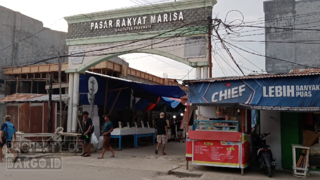 Pantauan di lokasi, kondisi lengang terlihat sejak dari area gapura masuk hingga ke bagian dalam pasar tradisional terbesar di Kecamatan Marisa tersebut. Sejumlah lapak pedagang tampak tanpa pembeli, bahkan sebagian pedagang memilih duduk menunggu sambil berbincang.